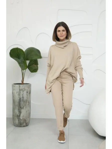 Blusa feminina, modelagem ampla, cava reta, manga longa com gola. O modelo possui barra em mullet. Confeccionada em tricot, oferecendo toque e caimento suave.